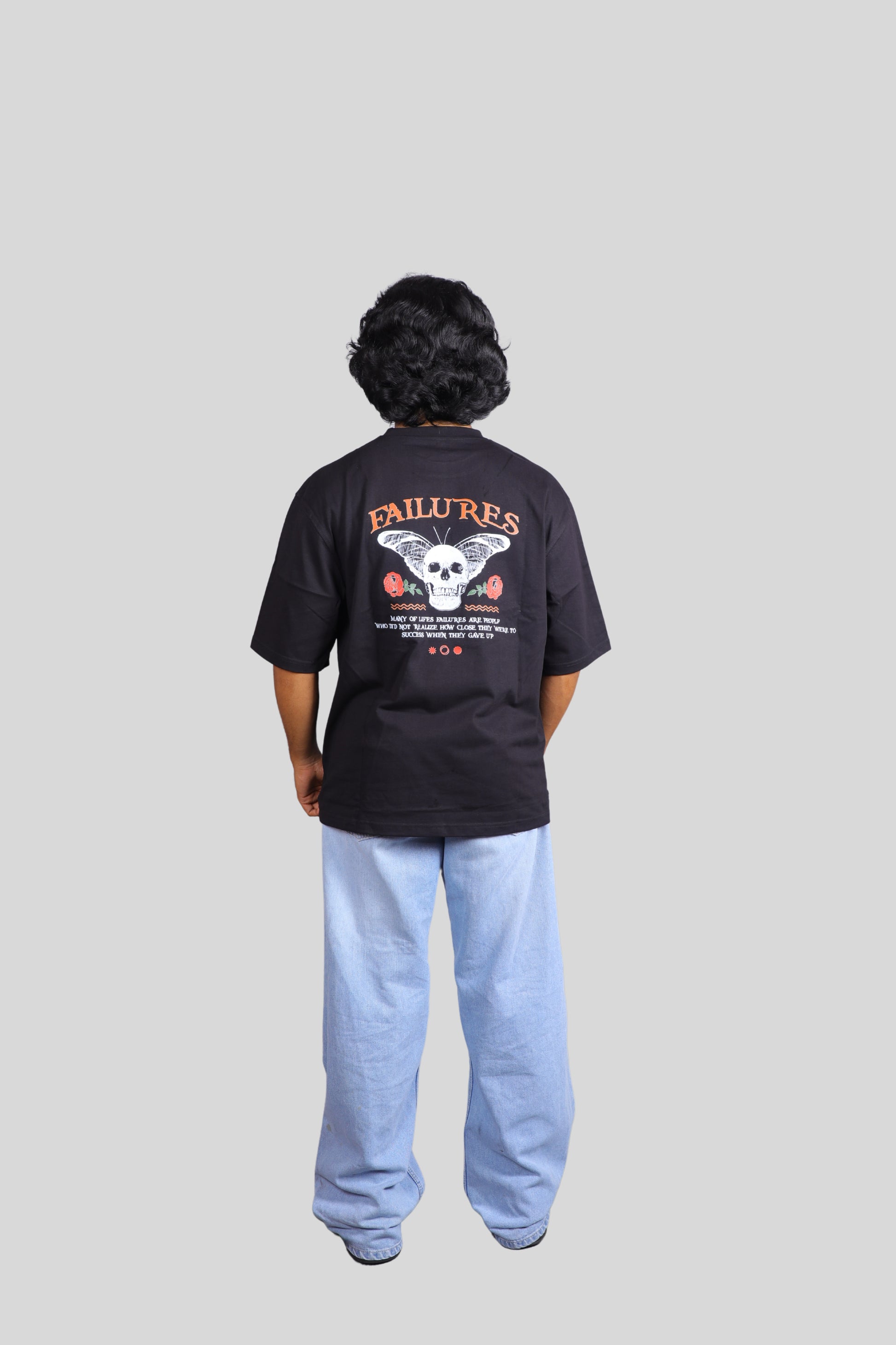 The bold, vintage-style back graphic is a powerful statement on personal growth. The imagery—a skull symbolizing mortality or past struggles, given butterfly wings for change, and framed by resilient roses—is topped by the word "FAILURES." This design challenges conventional notions of success, reflecting the truth that true strength comes from learning and rising after falling. The powerful underlying message resonates with a generation that values authenticity and resilience.